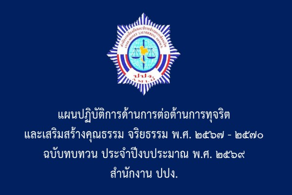 แผนปฏิบัติการด้านการต่อต้านการทุจริต และเสริมสร้างคุณธรรม จริยธรรม พ.ศ. ๒๕๖๗ - ๒๕๗๐ ฉบับทบทวน ประจำปีงบประมาณ พ.ศ. ๒๕๖๙ สำนักงาน ปปง.